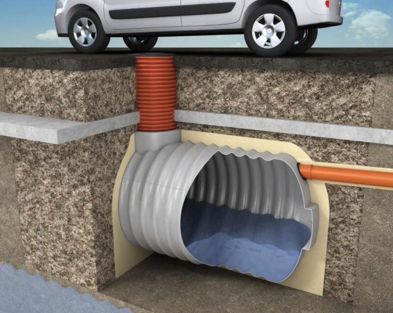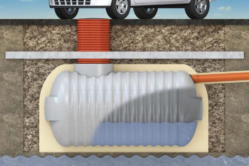 Płytę betonową wykonujemy tylko w celu zabezpieczenia zbiornika przed wyporem wód gruntowych które sięgają powyżej osi poziomej zbiornika lub w celu zabezpieczenia zbiornika przed ruchem pojazdów, czyli przy montaż w ciągu drogi. Zbiornik nie może być montowany pod różnego rodzajami budowli, typu: domki, wiaty, skalniaki itp.