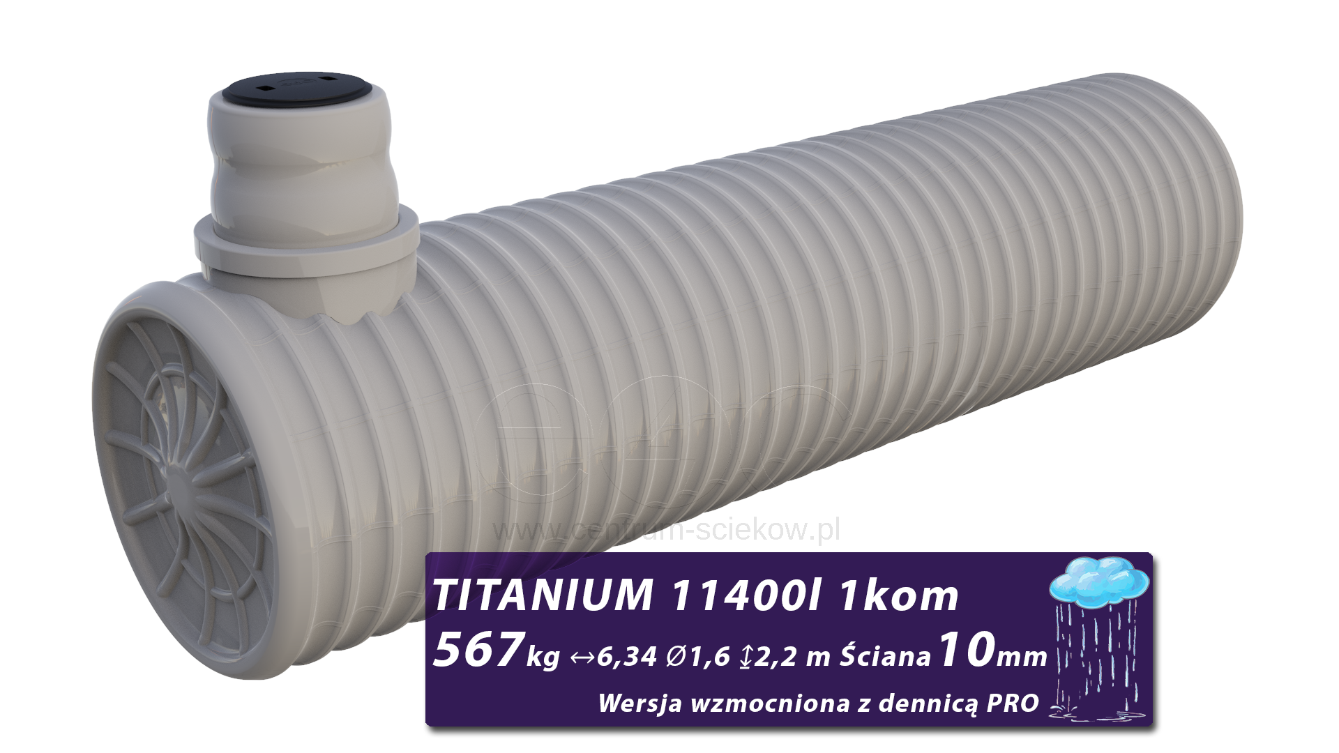 Wzmocniony zbiornik podziemny jednokomorowy z dennicą PRO o pojemności 11400l, przeznaczony do magazynowania wody deszczowej w budownictwie jednorodzinnym. Zbiornik jest odpowiedni do magazynowania deszczówki przy sporym ogrodzie.