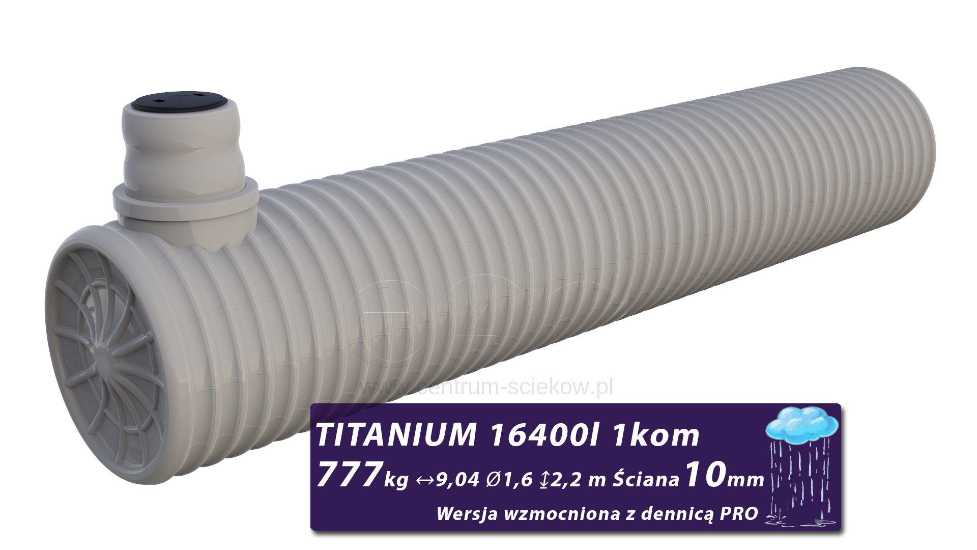 Wzmocniony zbiornik podziemny jednokomorowy z dennicą PRO o pojemności 16400l, przeznaczony do magazynowania wody deszczowej w budownictwie jednorodzinnym. Zbiornik jest odpowiedni do magazynowania deszczówki przy sporym ogrodzie.